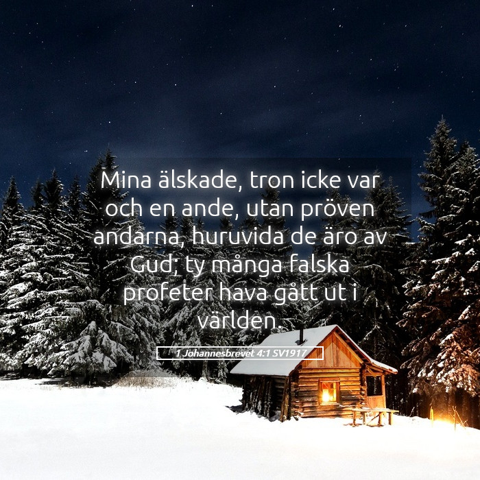 1 I älskade, tron icke var och en ande, utan pröven om andarna äro av Gud; ty många falska profeter hava gått ut i världen.