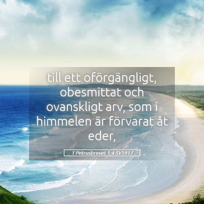 - 1 Petrus 1:4 – ”Till ett arv som är oförgängligt och obesmittat och ovanskligt...”
