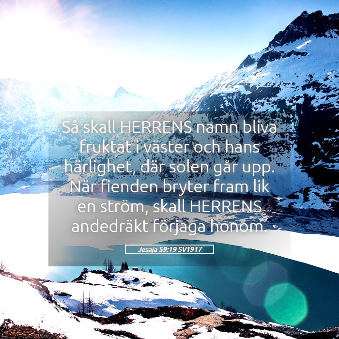 "Så skola de frukta HERRENS namn i väster och hans ära där solen går upp. Ty han skall komma såsom en trängande ström, som HERRENS Ande driver fram."
