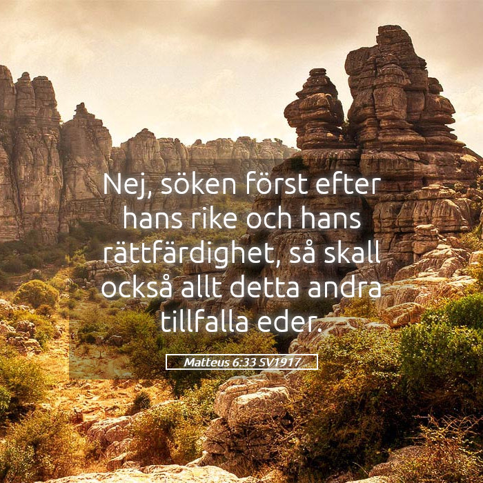 - Matteus 6:33 – Sök först Guds rike; Han tillägger behoven i projekt och planer.