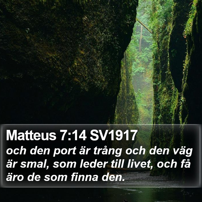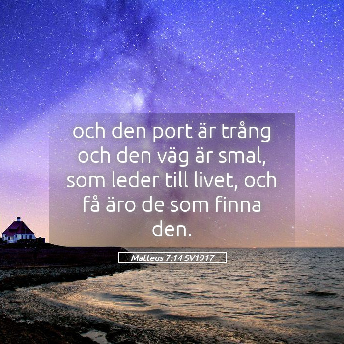 14 Men den port är trång, och den väg är smal, som leder till livet, och få äro de som finna den.