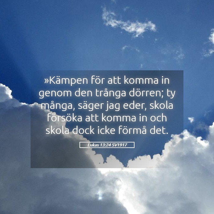 24 Kämpen för att komma in genom den trånga porten; ty många, säger jag eder, skola söka att komma in, men skola icke kunna det.