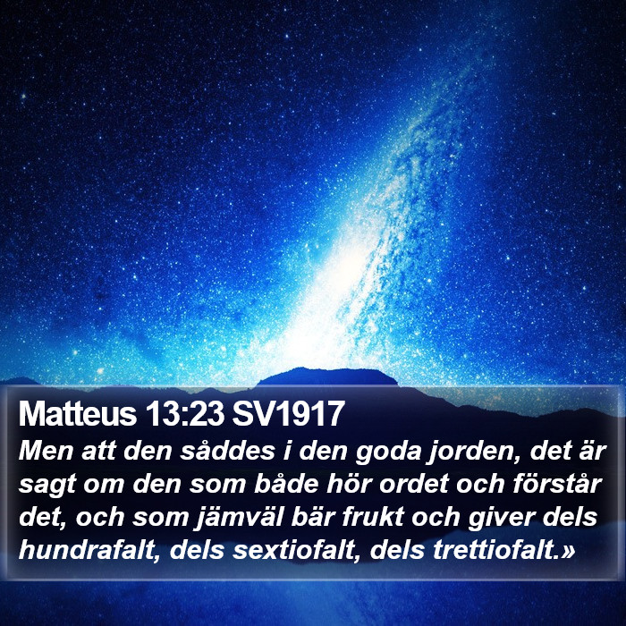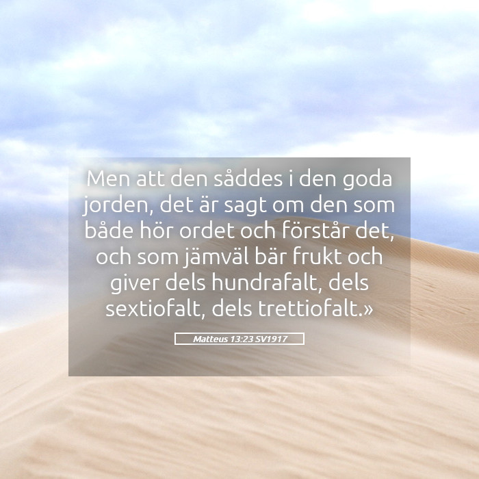 Men i kontrast ger Matteus 13:23 ett hoppfullt budskap. Det visar att när Ordet faller i god jord (ett ärligt och överlåtet hjärta) bär det frukt, hundrafalt, sextiofalt eller trettiofalt.