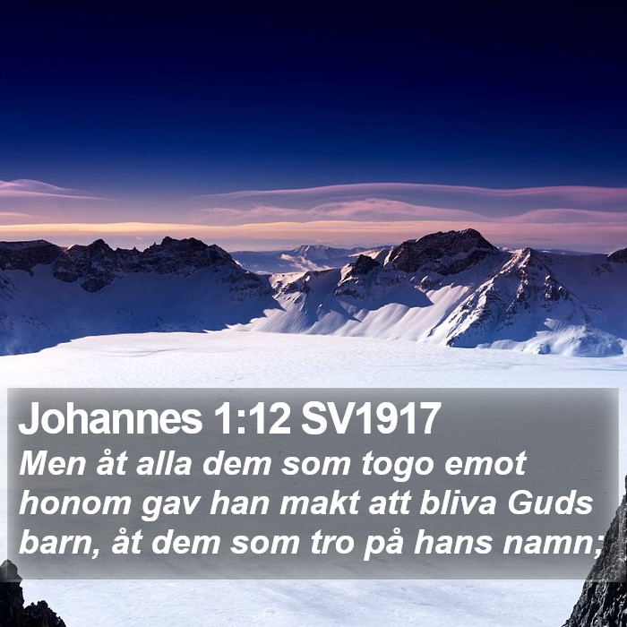 Johannes 1:12 – "Men åt alla dem som togo emot honom gav han makt att bliva Guds barn, åt dem som tro på hans namn;"