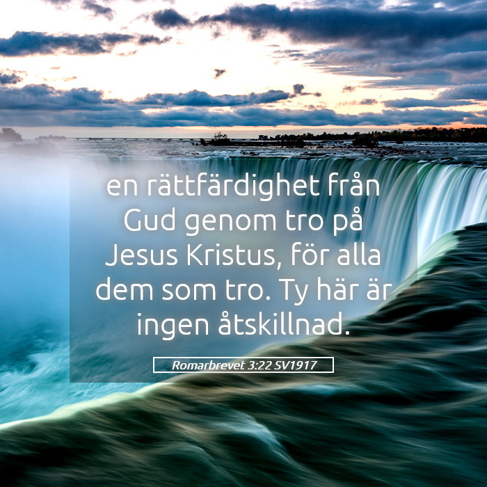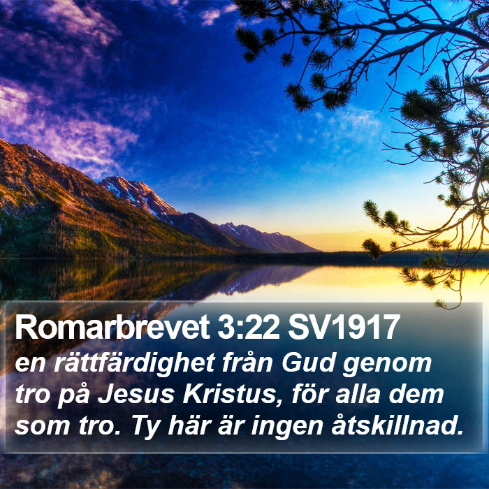 Romarbrevet 3:22 – "Nämligen Guds rättfärdighet genom tro på Jesus Kristus, för alla och över alla som tro. Ty här är ingen åtskillnad;"