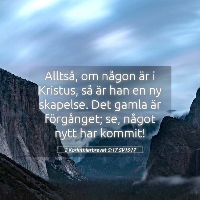 2 Korinthierbrevet 5:17 – "Alltså, om någon är i Kristus, så är han en ny skapelse; det gamla är förgånget, se, något nytt har kommit."